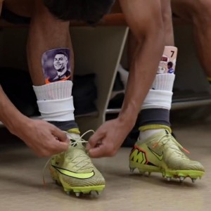 01月21日讯 今日中国足球队官方发布U23亚洲杯半决赛纪录片,在视频中可以清楚地看到,向余望的护腿板印着自己的偶像C罗...
