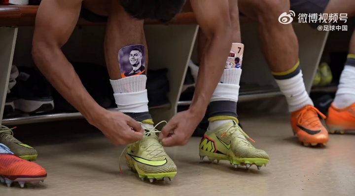 01月21日讯 今日中国足球队官方发布U23亚洲杯半决赛纪录片,在视频中可以清楚地看到,向余望的护腿板印着自己的偶像C罗。